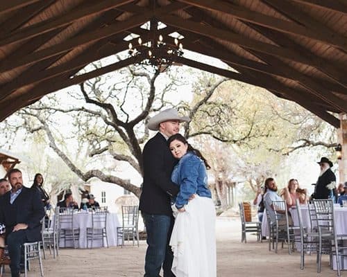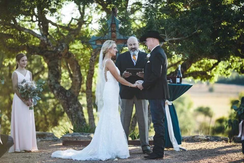 A lovely hilltop location that overlooks the breathtaking Texas Hill Country. Benches and chairs are available for your ceremony, with plans to make this an even more special place.